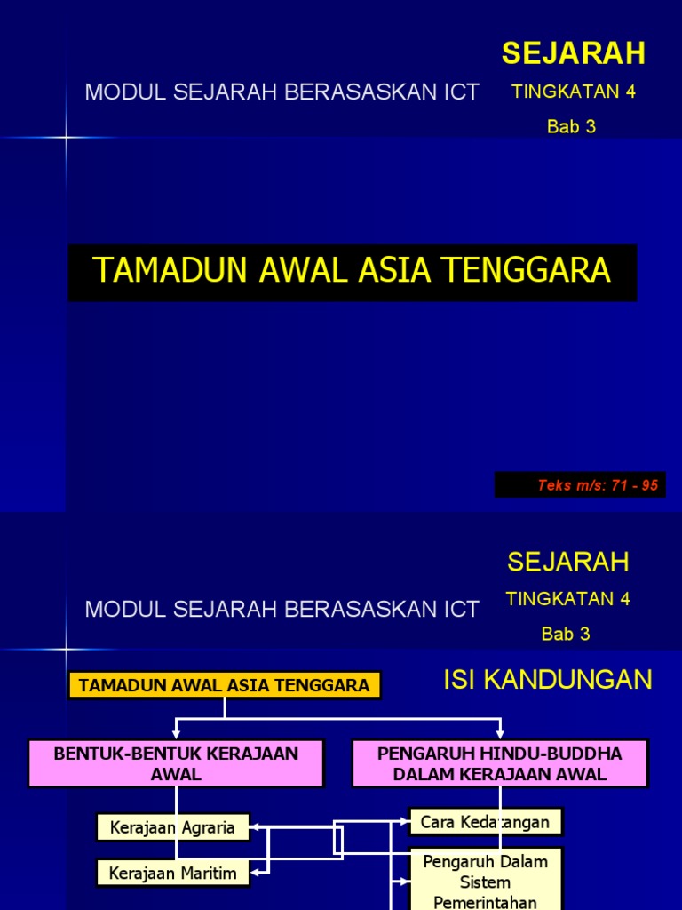 Saya cikgu kumar yang mengajar home tuition untuk matapelajaran sejarah tingkatan 1 sehingga tingkatan 5 iaitu untuk student saya yang tinggal dari perlis. Bab 3 tamadun awaldi asia tenggara. Kerajaan kedah tua terletak di kawasan yang dari tiupan angin monsun barat daya dan timur laut. 2 downloads 166 views 150kb size. You can create one as well, really easily.get started. Bab 3 sejarah tingkatan 4. Pemerintahan dan perluasan kuasa nnmtb. Terdapat 10 bab utama yang murid perlu kuasi. Sejarah tingkatan 4 bab 3. Peperiksaan akhir tahun tingkatan 4. Sejarah bab 4 tingkatan 4 kertas 3full description. Video ini merupakan salah satu tugasan untuk subjek multimedia bagi melengkapkan 'teaching aid' yang dibina. Contoh kerajaan agraria f1 kerajaan agraria menjalankan ekonomi berdasarkan pertanian.