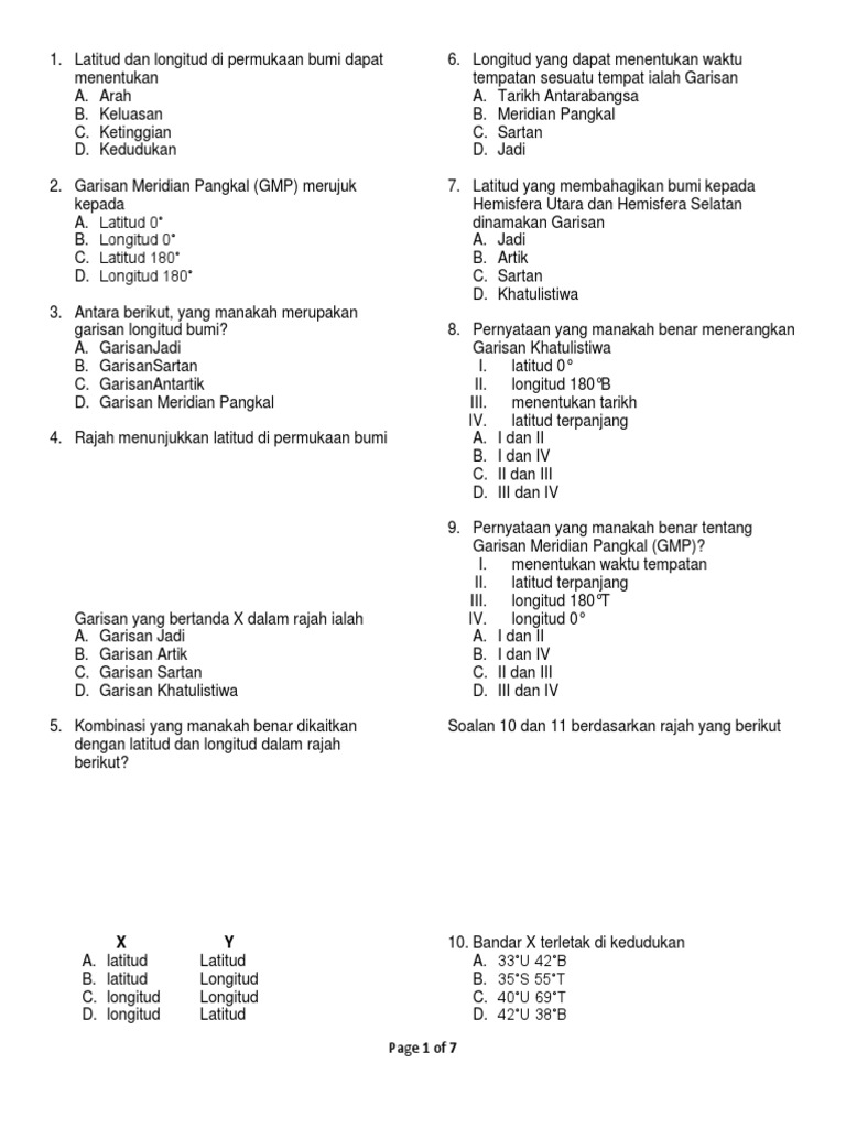 Rekod tahap penguasaan murid geografi tingkatan 2 soalan 6 hingga 8 berdasarkan peta di bawah: 10 skemajawapan ujian bulan mac 2011 geografi tingkatan 2 bahagian a soalan jawapan soalan jawapan 1 a 21 b 2 b 22 a 3 a 23 a 4 a 24 b 5 a 25 b 6 d 26 a. Apakah ciri budaya yang boleh dilihat di rg 6. 0%(1)0% found this document useful (1 vote). Bahasa melayu (bm), bahasa inggeris, matematik, sains, pendidikan islam, sejarah, geografi, bahasa ar.